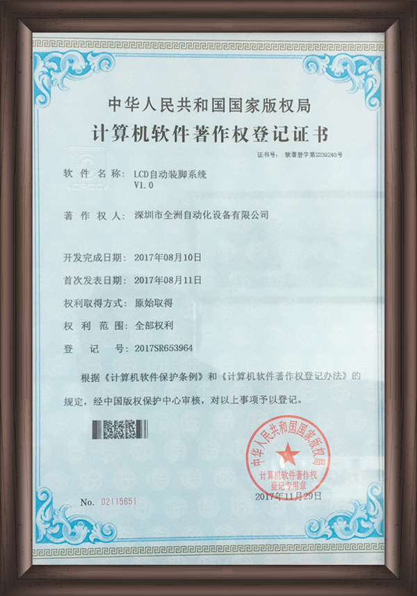 深圳市全洲自動化設備有限公司是一家集研發、生產、銷售為一體的國家高新技術企業,擁有一支強大、資深的技術研發團隊,及完善的生產、銷售服務隊伍。公司致力于LCD和半導體行業的智能制造,先后推出了全自動貼片、裝腳、點膠、固化、切腳流水線,全自動LCD AOI測試機、COG/COB自動AOI測試機、TFT多畫面測試機。并破解行業難題,研發了分辨率達微米級的LCD整模圖像檢測機等高端設備,可應用于LCD/TFT/集成電路/晶圓檢測等領域,有效提升生產和測試效率,保障產品品質。受到了新老客戶的歡迎和好評,與業內眾多知名企業建立了長期合作伙伴關系。公司秉承“誠信經營、科技創新”的經營理念和“團結、合作、進取”的企業精神,竭誠為客戶提供優質的產品,完善的技術服務!讓我們攜手,互利雙贏,共同發展,一起邁向企業美好的新未來、新坐標!